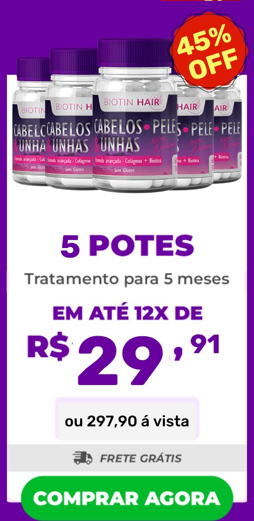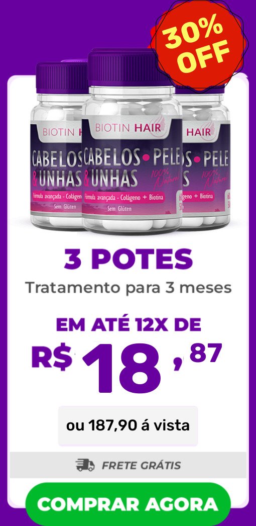 Não se preocupe, comprar o Biotin Hair é fácil e confiável. Seus dados ficarão 100% seguros e você não terá nenhum problema para efetuar o pedido online
