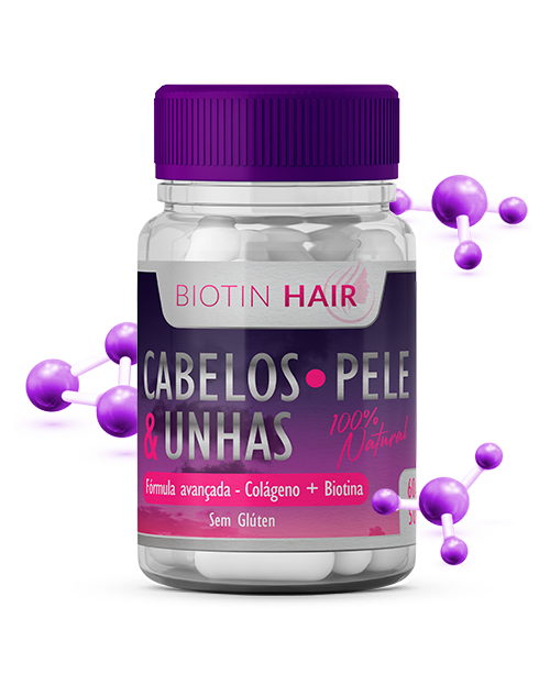 O Biotin Hair paralisa a queda dos seus cabelos em até 98%. Os fios envelhecem ao longo do tempo, por isso entre nossas vitaminas temos a 1000mcg de Biotina, vitamina essencial para controla a queda capilar em mulheres