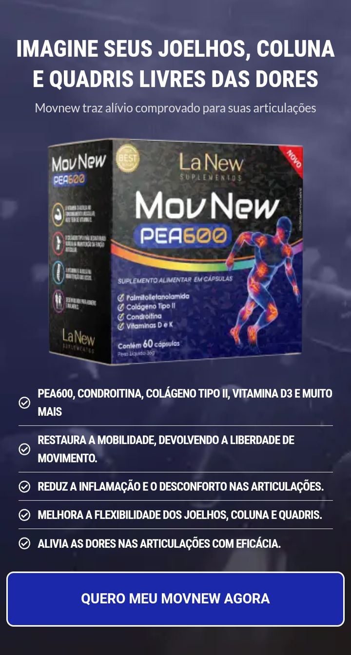 🦴 Dica de Performance: O uso contínuo do Movnew é o segredo para evitar lesões crônicas. Não espere a dor aparecer para começar a cuidar das suas articulações.